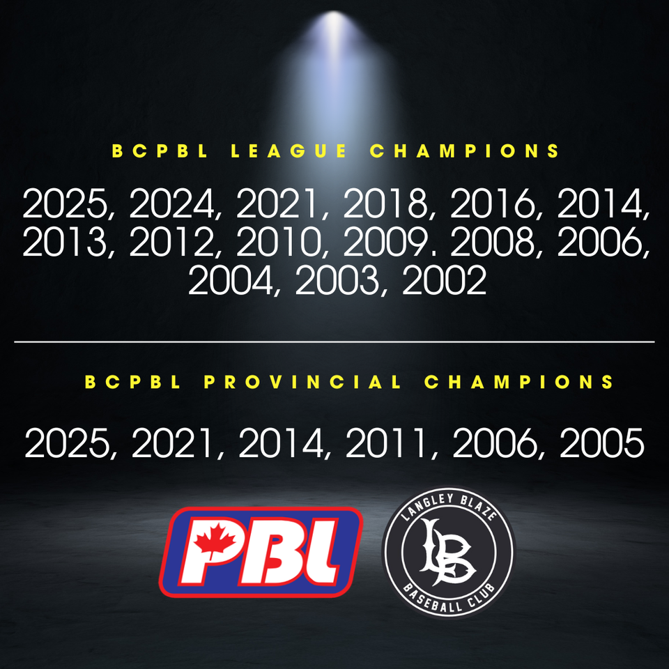 Blaze in the News{{widget.isRotating ? 'pause_circle' : 'play_circle'}}Congratulations Oscar Leah, Cole Dorland & Luke Laird - 2025 Canada Games CHAMPIONS Read More Langley Blaze Welcomes Mike Eskildsen to Bantam Coaching Staff Read More Juniors Clinch Regular Season Title with 30 Wins. Head to Provincials as #1 seed! Read More BLAZE WIN 2025 BCPBL PREMIER PROVINCIAL CHAMPIONSHIP Read More Congratulations Oscar Leah, Cole Dorland & Luke Laird - 2025 Canada Games CHAMPIONSLangley Blaze Welcomes Mike Eskildsen to Bantam Coaching StaffJuniors Clinch Regular Season Title with 30 Wins. Head to Provincials as #1 seed!BLAZE WIN 2025 BCPBL PREMIER PROVINCIAL CHAMPIONSHIP